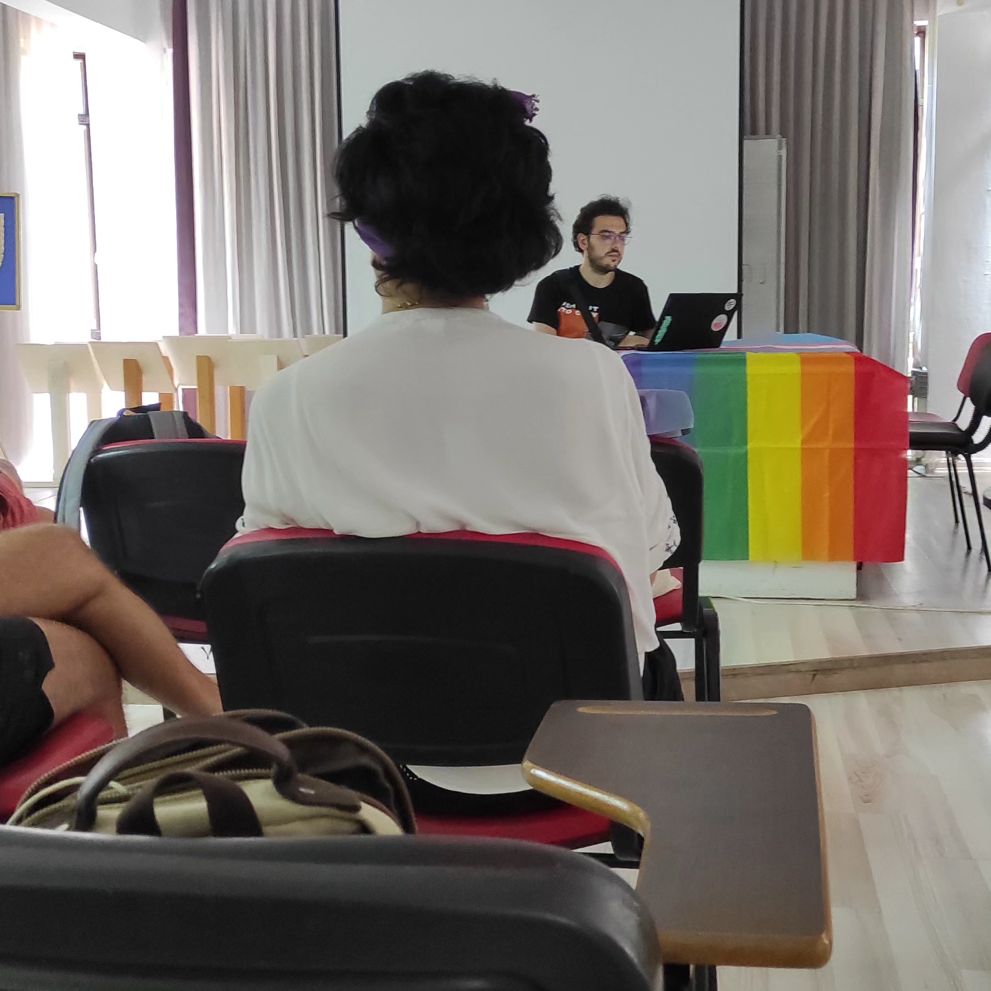 Av. Zeliha Şengöz “Kesişimsel Feminizm” sunumunu gerçekleştirirken Av. Ahmet Çevik “Yerelde LGBTQ+, Hafıza Aktivizm ve Hukuk Kesişimselliği” isimli söyleşiyi gerçekleştirdi.